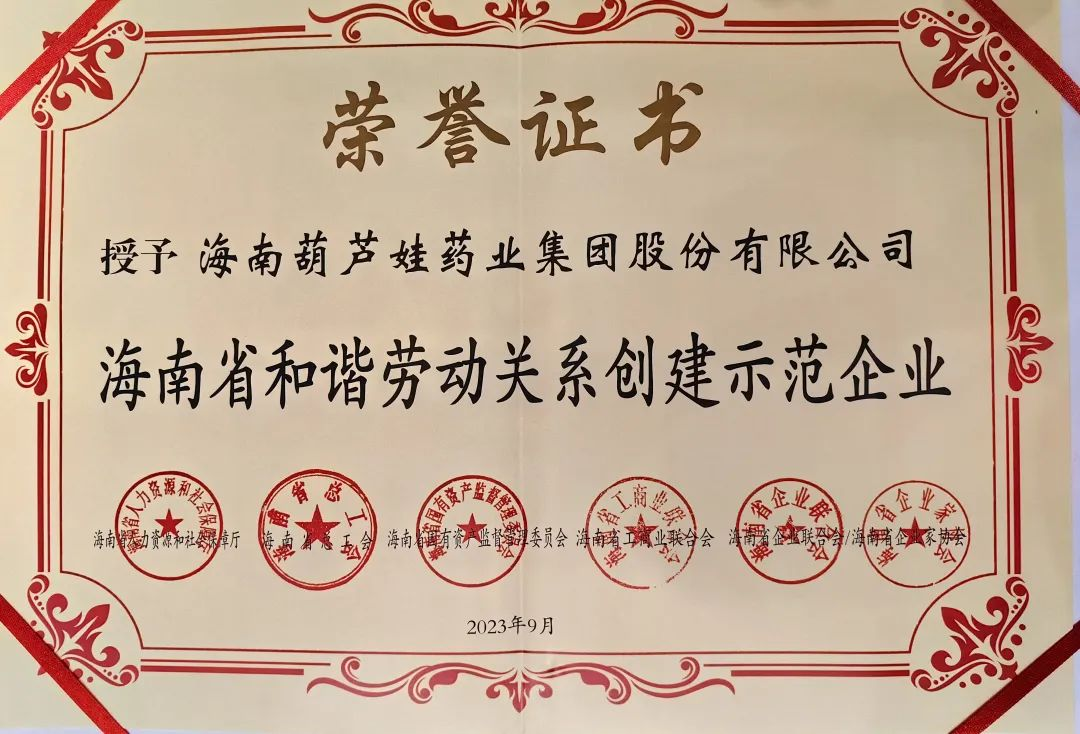 伟德国际1946药业集团获评“海南省和谐劳动关系创建示范企业”